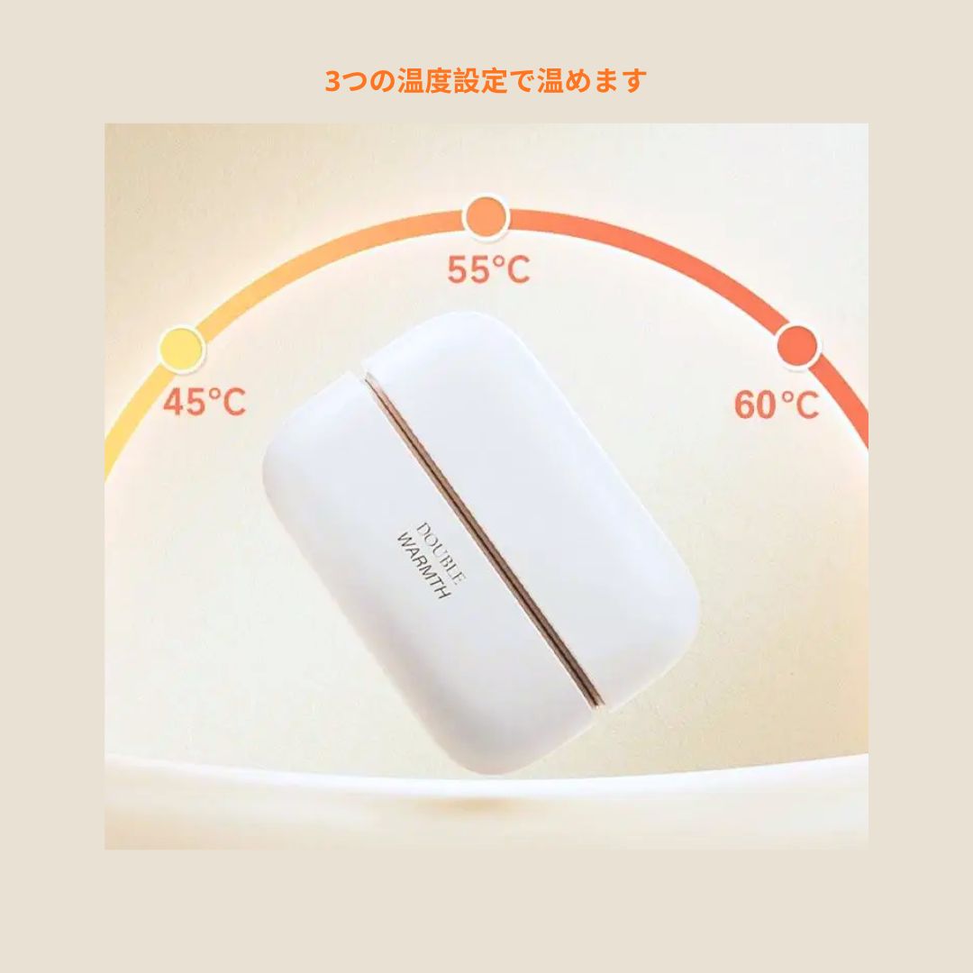 手を温めるだけでなく、USB経由で携帯電話や他のデバイスを充電できるパワーバンク機能もあります — 緊急時にぴったりです。